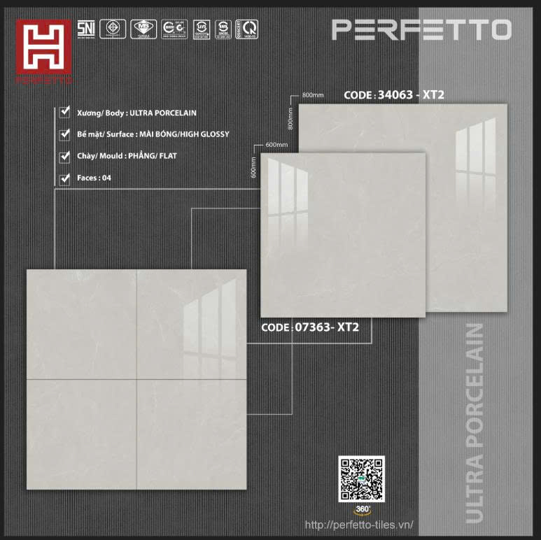 Chất liệu: Porcelain – xương gạch cứng, độ bền cao